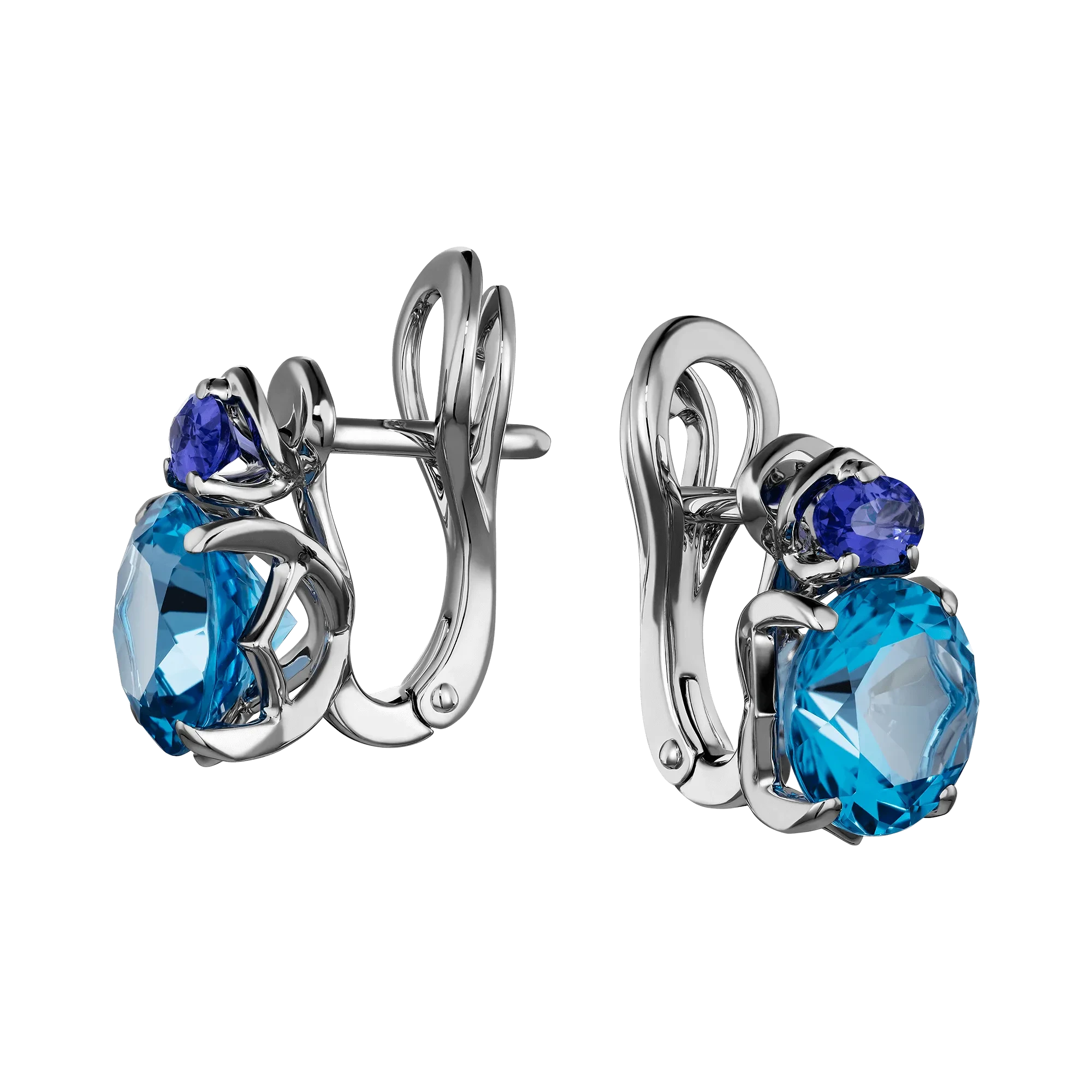 Сет царственных голубых топазов воплощают в себе чистоту и спокойствие озёрной глади, на которой покоится лунный свет. Его кристальная ясность несёт волнение и ожидание таинственных ночных историй, словно он заключил в себе чудеса неведомых тайн. Сияющие союзники центральных камней – соблазнительные танзаниты – укрепляют сочность композиции и ее искреннюю страсть к прекрасному. Их драгоценные отблески в мягких объятиях белого золота представляют собой мелодию мироздания, где каждое движение приносит новый куплет гармонии.