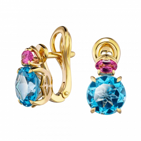 Центральные голубые топазы – словно фрагменты неба, застывшие в памяти. Они несут в себе чистоту безмятежного взгляда и прохладу, в которой живёт ясность. Каждое движение делает самоцветы живыми: они отзываются на свет, отражая его мягким сиянием, будто вспоминая то мгновение, когда всё совпало.