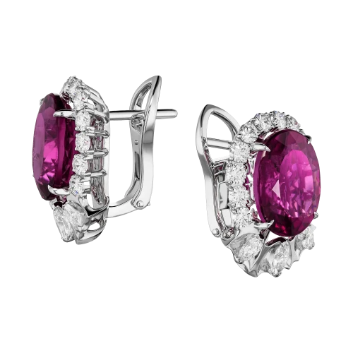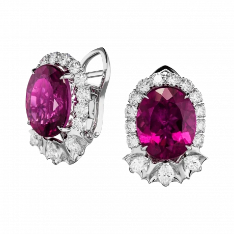 Серьги из белого золота с рубеллитом и бриллиантами