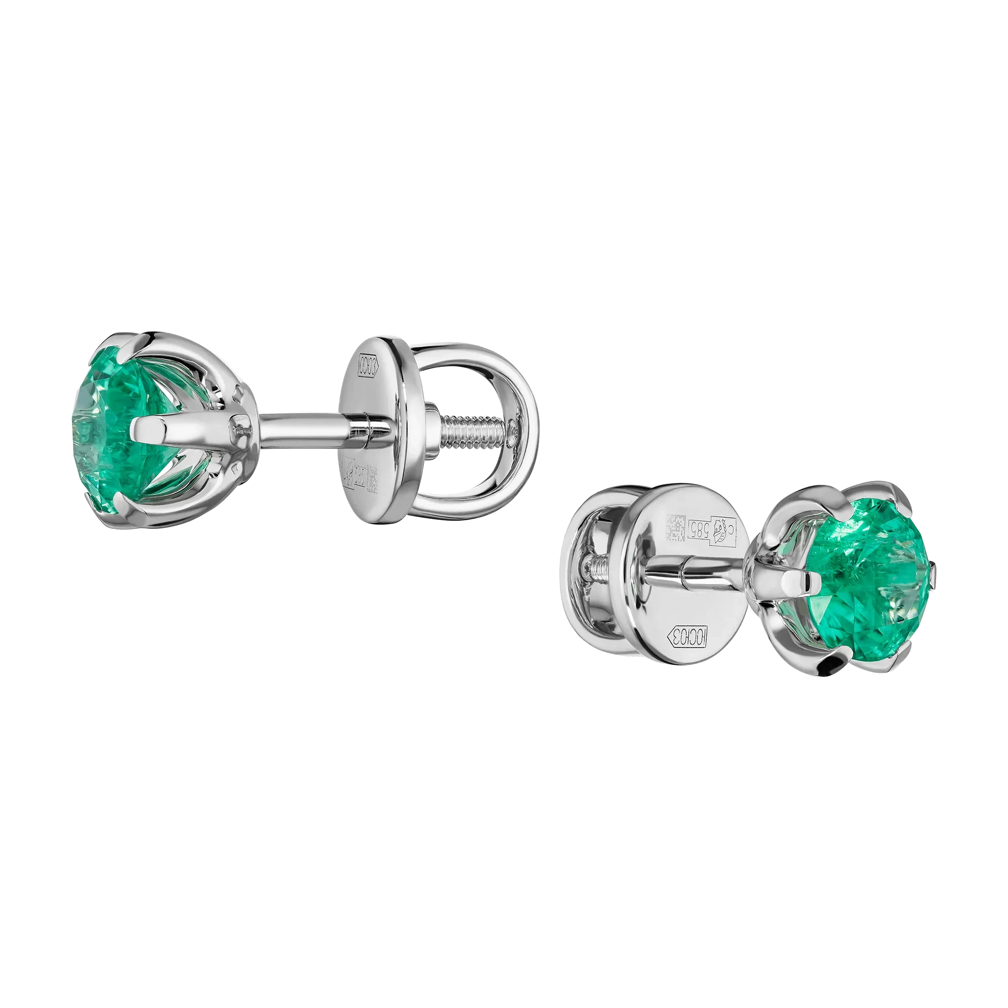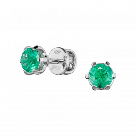Белое золото оправы подчёркивает кристальную чистоту изумрудов, создавая тонкий контраст между прохладой металла и теплом природного света, рождающегося в камнях. Серьги идеально балансируют между повседневной сдержанностью и торжественной выразительностью.