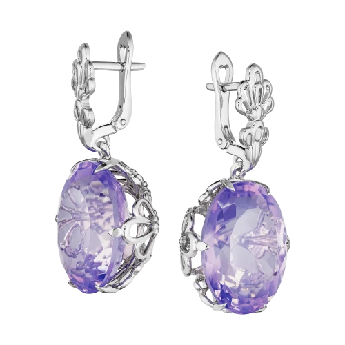 Лёгкое мерцание цвета здесь воспринимается как состояние — спокойное, обволакивающее, почти невесомое. Серьги «В лавандовом плену» раскрывают редкую красоту оттенка, в котором свет и прозрачность соединяются в тонком равновесии.