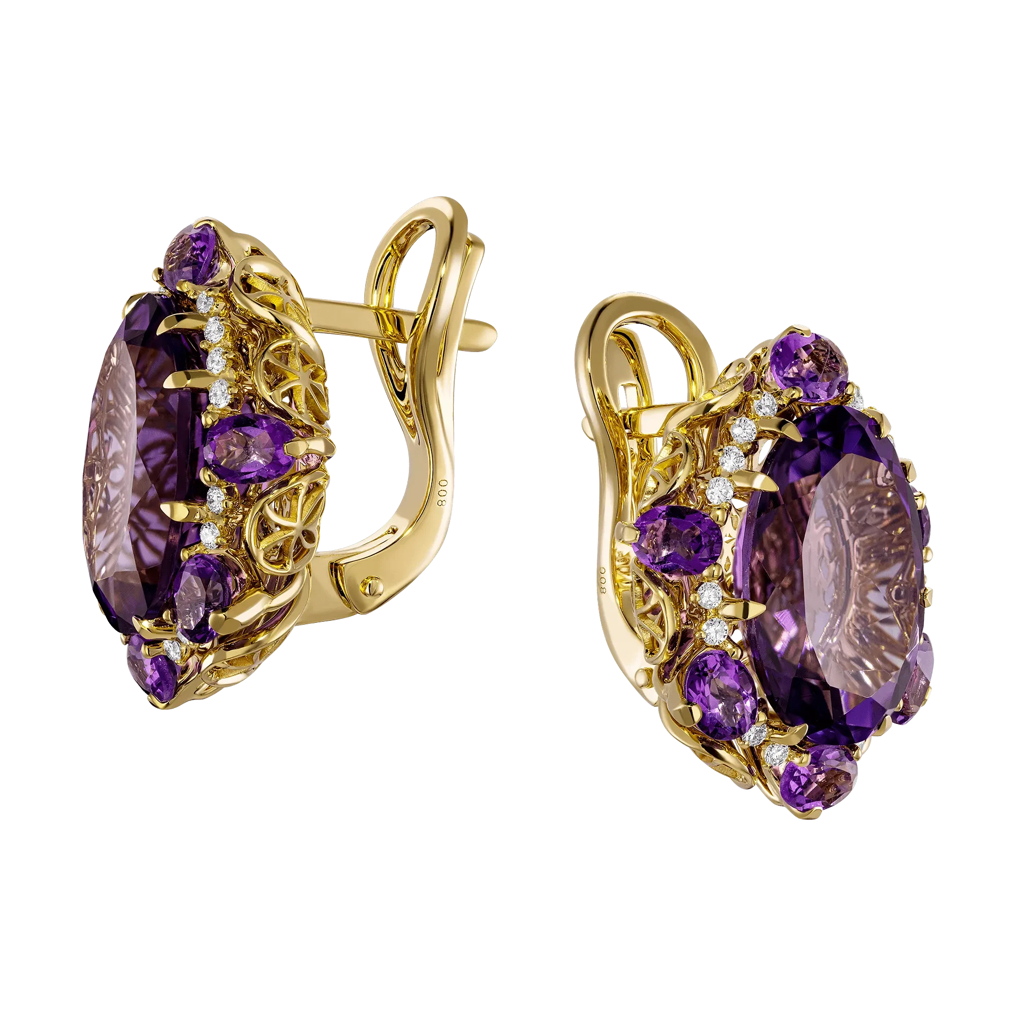 Собранные в единое целое несколько чистейших аметистов общим весом 11,06 карат с особенно ярко выделяющимся гегемоном в самом центре мягко покоряют редким, насыщенно фиолетовым цветом, достойно выглядящем в образе современной королевы. Соседство с россыпью сверкающих бриллиантов позволяет еще сильнее подчеркнуть красоту лиловых кристаллов, способных расширять высший разум, что поможет владелице отбросить все сомнения и отдаться романтическим чувствам.