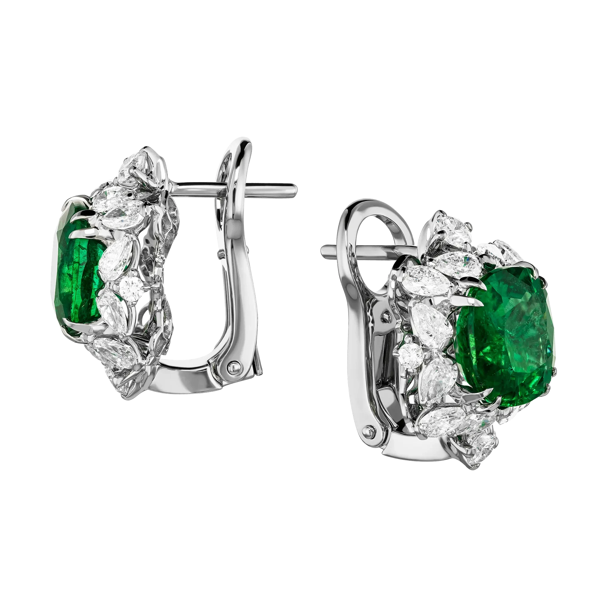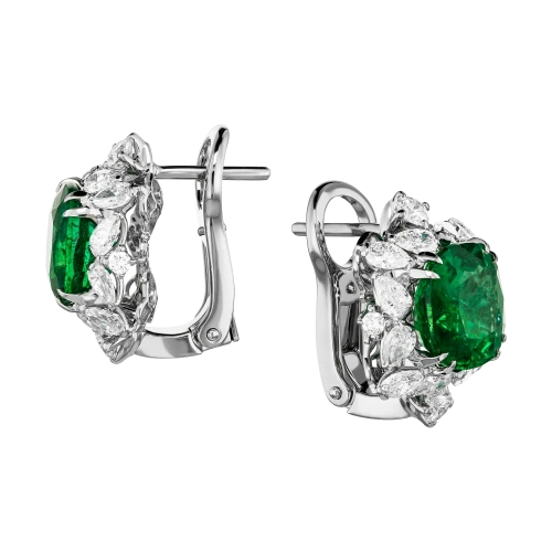 В центре каждой серьги – замбийский изумруд глубокого, благородного оттенка. Самоцветы из Замбии славятся чистотой и выразительной насыщенностью цвета: их зелёный тон рождается в уникальных природных условиях, создавая ощущение живой энергии, заключённой в кристалле. Такой камень не просто сияет – он передаёт характер, уверенность и ту эмоциональную высоту, которую украшение стремится выразить.